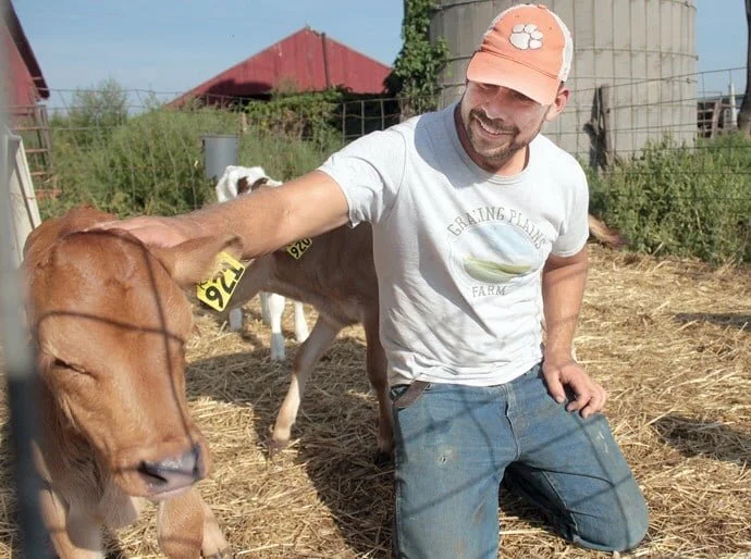 Jason Schmidt is the owner of Grazing Plains Farm, LLC. where he strives to make small farming work by using sustainable agricultural practices. Jason’s diverse educational background and Mennonite heritage shape the way that he lives his life and manages his operation. After earning his A.A. at Hesston College, Jason served with MCC’s SALT program where he shadowed an Anglican priest in South Africa who helped rural South Africans become more self-sustainable. He returned to Kansas where he completed his undergraduate degree in Global Peace and Justice at Bethel College, Newton, Kansas. Joining Mennonite Voluntary Service, he worked for two years with community gardens and organic vegetable co-ops in Colorado. After completing his master’s degree in Plant and Environmental Sciences from Clemson University, Jason returned to his family farm, where he now lives with his wife and two children.